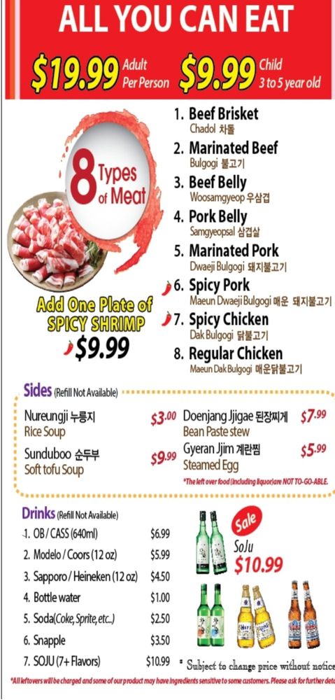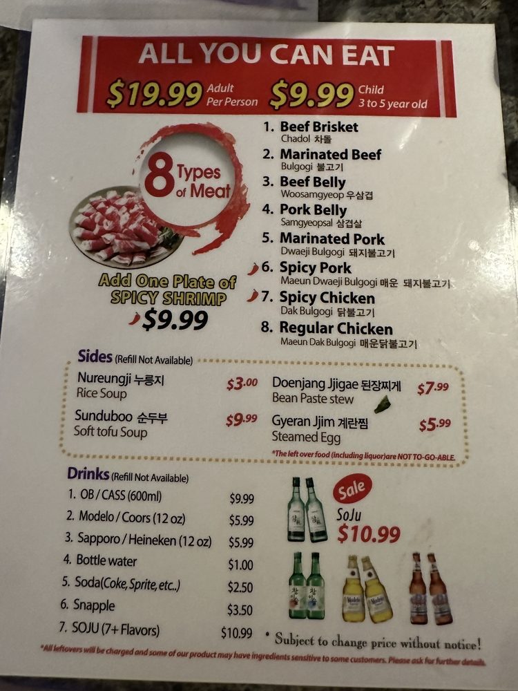 Introducing the menu at Mr. Lee’s Barbeque House, a Korean BBQ gem in La Palma, CA. This Asian-owned restaurant offers a casual dining experience with a range of amenities, including outdoor seating, private dining options, and even plastic-free packaging. Customers rave about the attentive service, large portions, and DIY grilling experience. The menu boasts top-quality meat selections, flavorful marinades, and traditional banchan sides. Diners can enjoy a buffet-style spread of sides, including the popular kimbop. The friendly staff, fast service, and relaxed atmosphere make this a go-to spot for Korean BBQ enthusiasts. With a variety of meat options and a fun, interactive grilling experience, Mr. Lee’s Barbeque House stands out as a must-visit destination for a delicious and enjoyable dining experience.